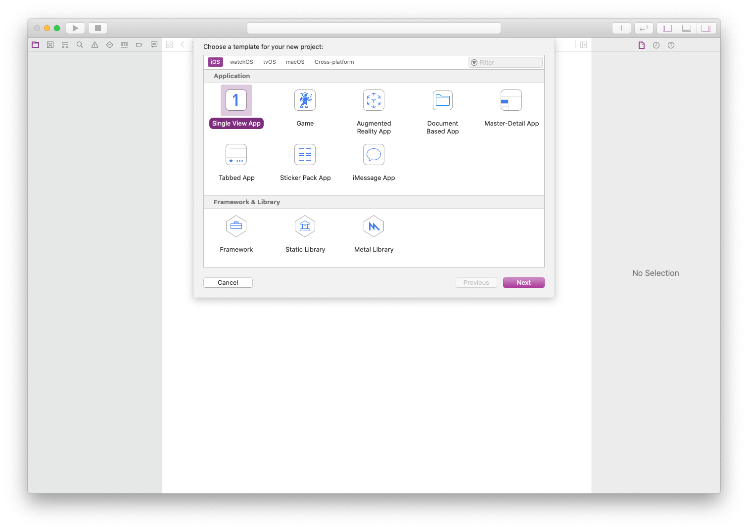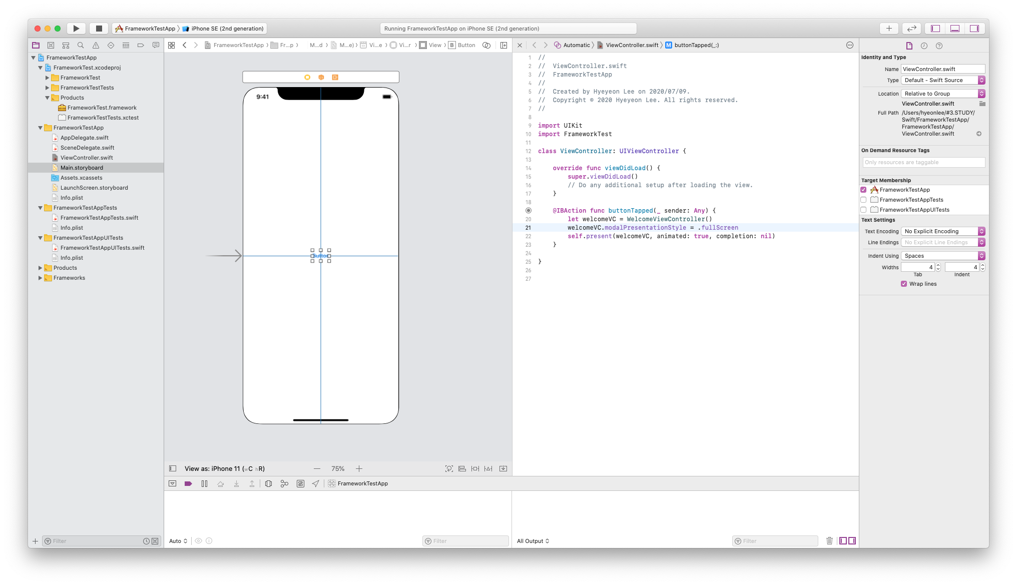 - Xcode에서 Framework를 실행할 Single View App을 만든다.