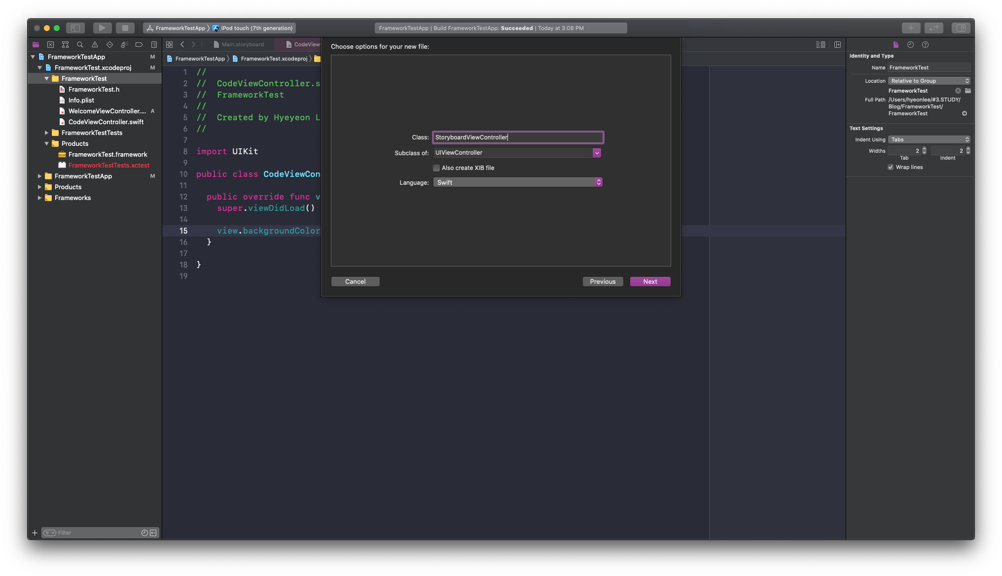 2. Storyboard - 프레임워크에 파일 생성
