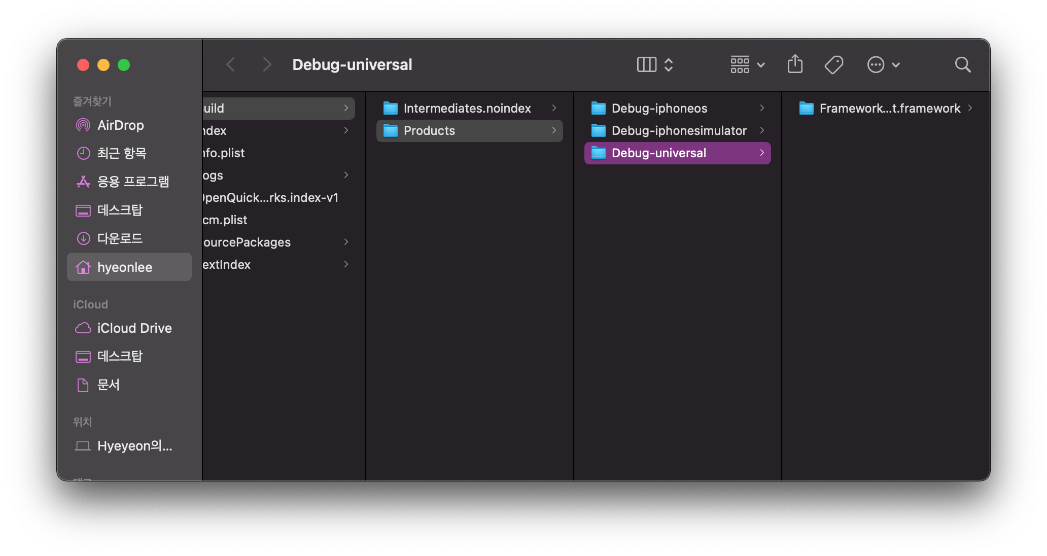 그러나 폴더를 자세히 보면Debug-iphonesimulator라는 이름으로 폴더가 만들어져있습니다.